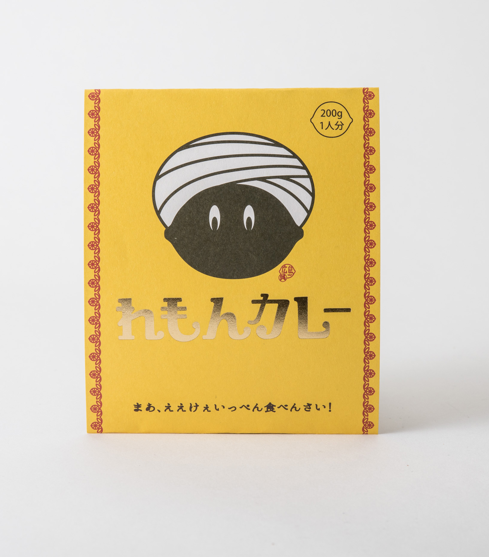 レトルト食品パッケージ。カレーの中にレモンが入っている商品なので、そのまま見てわかるようにレモンとカレーを足したストレートなデザインに。親しみやすくするためにかわいさを加えました。