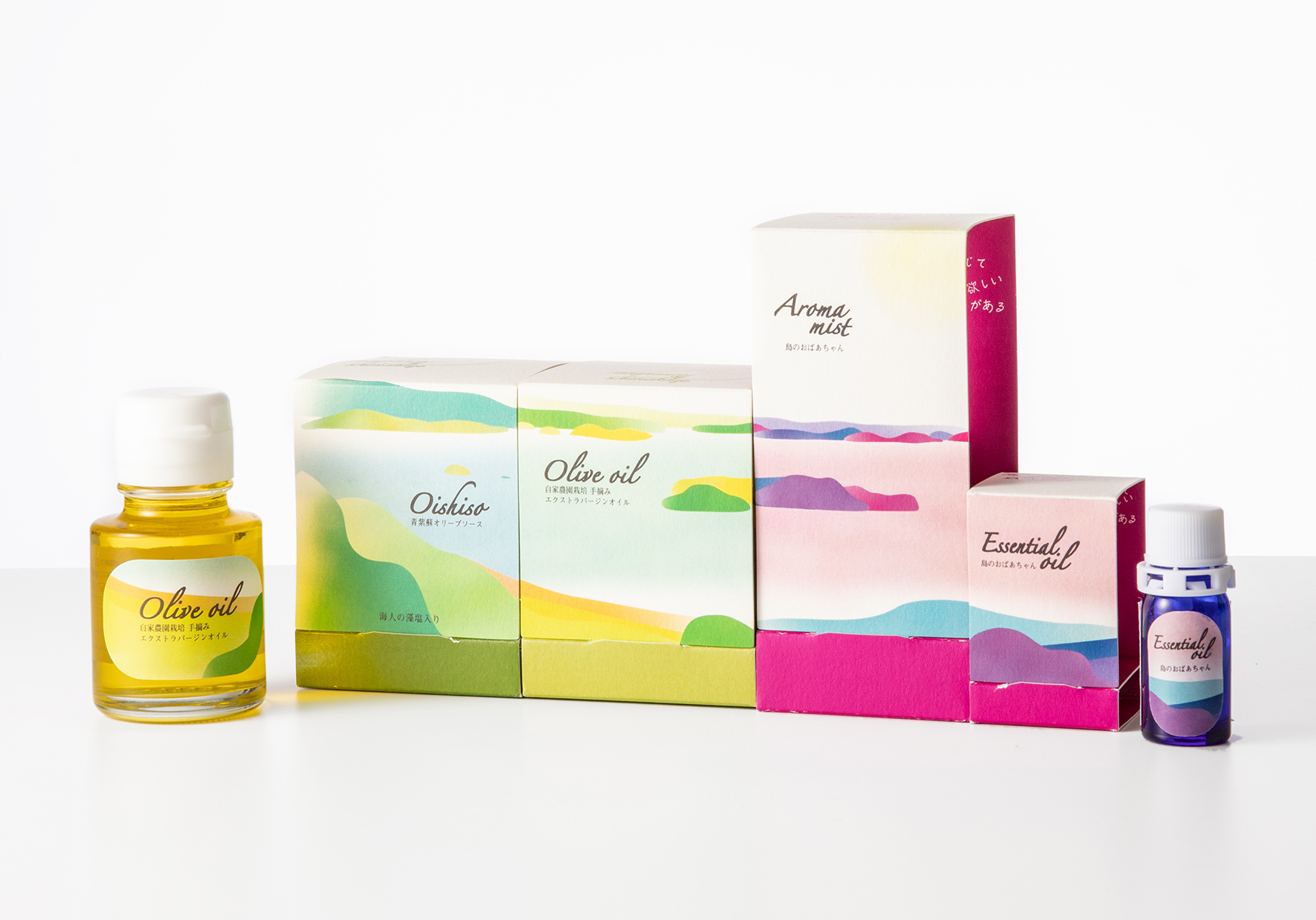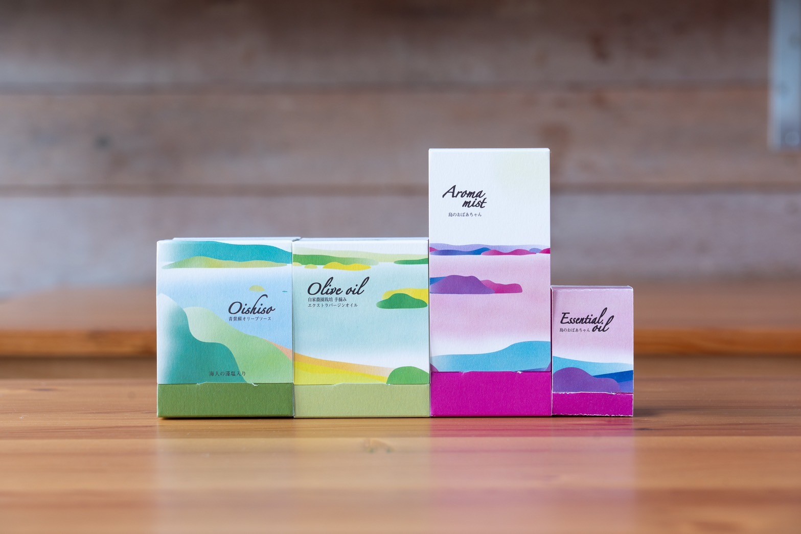 パッケージデザイン。瀬戸内海下蒲刈島の空気感や香りをそのまま持って帰って思い出して欲しい。という想いから作られた島の材料を使った食や香りにこだわった商品。島の風景と島の雰囲気をイラストにしました。そのままお店でディスプレイしたり、家で飾ってもらえるようなパッケージ設計を考えました。